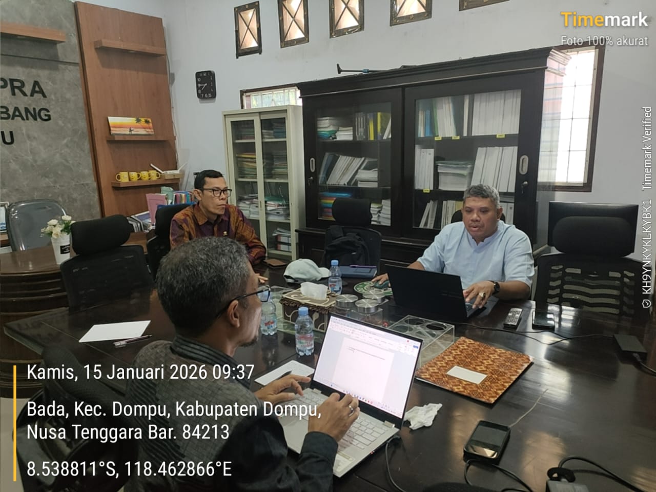 Rapat Koordinasi Forum Satu Data Kabupaten Dompu Semester II Tahun 2025 Pj. Sekretaris Daerah Kabupaten Dompu Bpk. H. Khairul Instan, SE., MM didampingi Asisten Bpk. Muh. Dardani, S.Sos dan Kepala Bappeda & Litbang Bpk. Muh. Adha, S.Sos., M.Si membuka secara resmi Rapat Koordinasi Forum Dompu Satu Data semester dua Tahun 2025 yang dihadiri Pimpinan Perangkat Daerah atau pejabat yang mewakili, yang dilaksanakan di Aula Bappeda & Litbang Kabupaten…